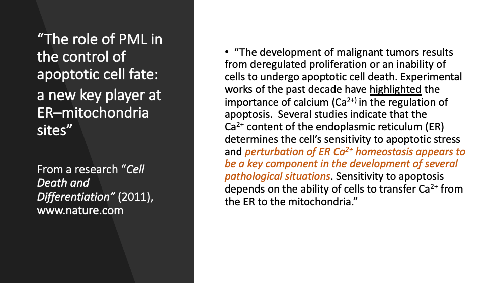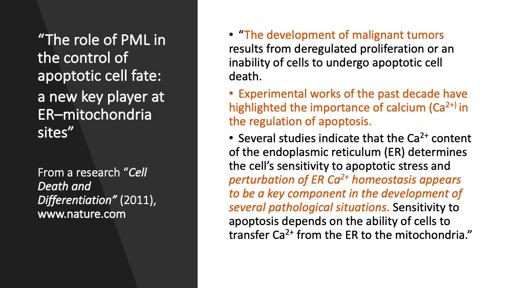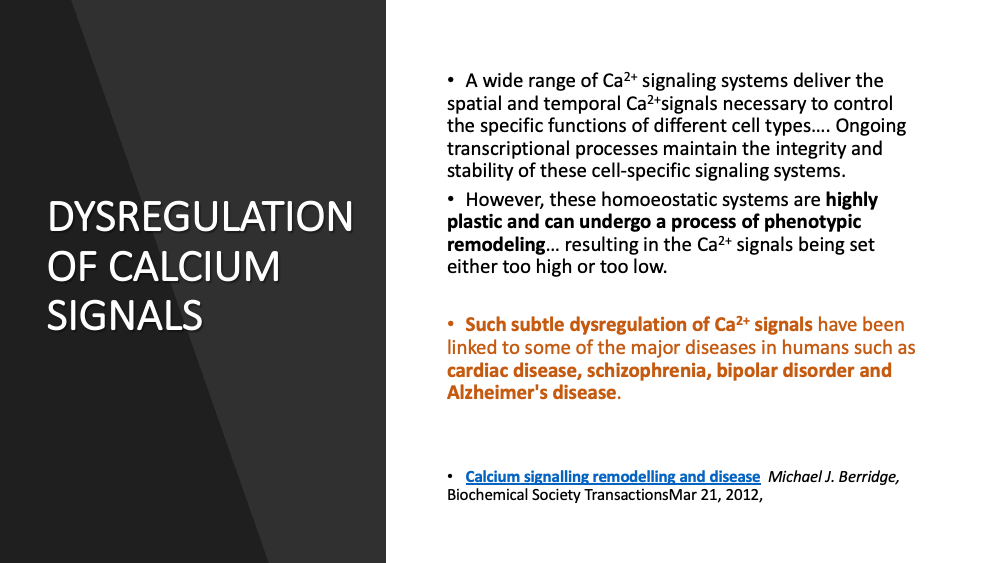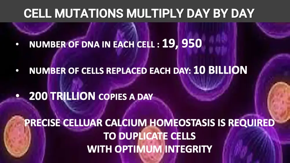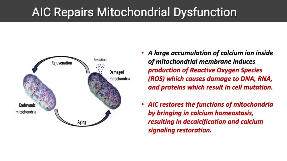 •A large accumulation of calcium ions inside mitochondrial membranes induces the production of Reactive Oxygen Species (ROS), which causes damage to DNA, RNA, and proteins, resulting in cell mutation, the main driving force of aging and cancer.
