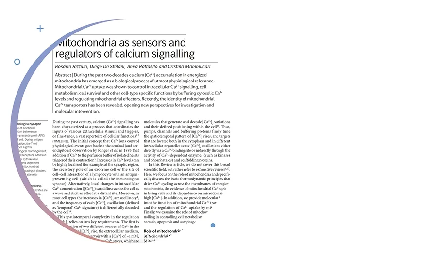 “During the past two decades calcium (Ca2+) accumulation in energized mitochondria has emerged as a biological process of utmost physiological relevance. Mitochondrial Ca2+ uptake was shown to control intracellular Ca2+ signalling, cell metabolism, cell survival and other cell-type specific functions by buffering cytosolic Ca2+ levels and regulating mitochondrial effectors. Recently, the identity of mitochondrial Ca2+ transporters has been revealed, opening new perspectives for investigation and molecular intervention. ”