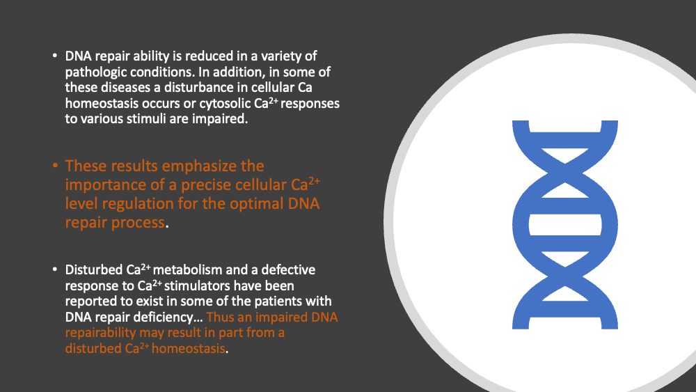 •DNA repair ability is reduced in a variety of pathologic conditions. In addition, in some of these diseases, a disturbance in cellular Ca2+ homeostasis occurs, or cytosolic Ca2+ responses to various stimuli are impaired.