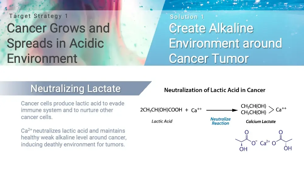 AIC-SG utilizes Antiorbital Formulation Technology to incorporate antiorbital calcium into calcium gluconate. This AIC calcium is concealed and indiscernible to our bodies, and AIC-SG is perceived as glucose rather than calcium, earning it the name "Stealth Glucose." Therefore, AIC-SG is directly absorbed through GLUT transport as glucose and not digested as calcium. Since cancer cells are hungrier for glucose and AIC-SG is absorbed and metabolized by cancer cells, AIC-SG releases free radicals, which destroy tumor cells with strong oxidative power.