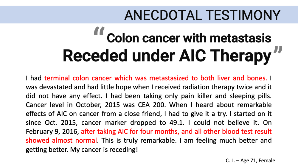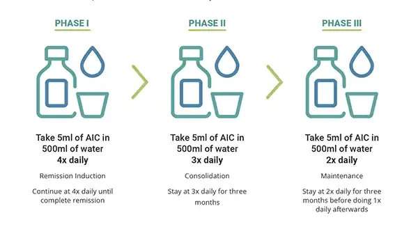 Because AIC Therapy is non-toxic and building healing momentum is important, ACRI recommends minimum 4 doses of AIC therapy daily for a minimum of 3 months to see the benefits of AIC therapy to be convinced to continue.