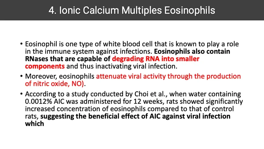 Ionic Calcium creates adverse environment where pathogens have difficulty proliferating. It also strengthen immune response against intruders.