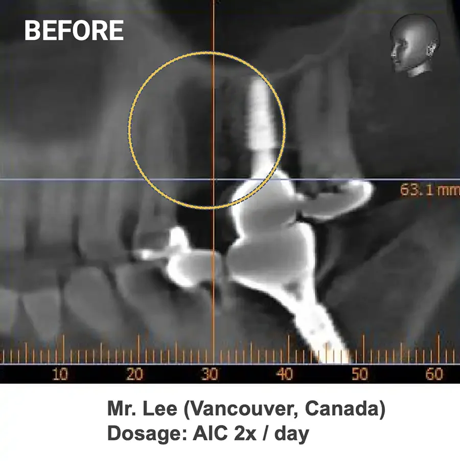 “Six months ago, I underwent an extraction, and my dentist recommended an implant after a bone graft. However, I expressed concern about my low jaw bone density and decided to delay the procedure. Despite my dentist’s insistence that there was no way to increase jaw bone density, I started AIC therapy. After a few months, I revisited my dentist and was thrilled to see the positive results of the X-rays. The increased jaw bone density made the implant procedure possible, much to my dentist’s surprise. It’s amazing what progress can be made with the right treatment!”