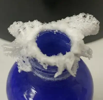 Because of the electrical charge of AIC ionic calcium carbonate molecules that interacts with the hydrogen bonding of water molecules, an open bottle of AIC evaporates calcium together with water molecules and crystalizes with CO2 in the air.