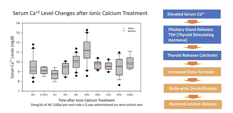 After intake, AIC’s effect lasts about four hours in our body, initially raising the serum ionic calcium concentration to a higher yet safe level to trigger various physiological functions before bringing down the serum ionic calcium concentration down to the average physiological level.