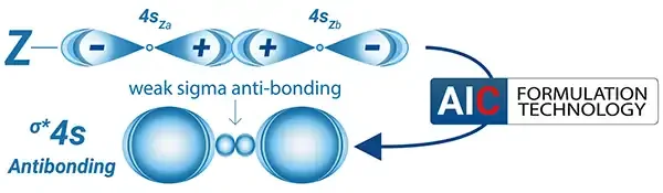 AIC calcium’s antiorbital bonding keeps the calcium atoms in the molecule very loose and unstable. Our innovative technology locks calcium atoms in place until it is released into our body. A highly advanced process formulates it to maintain positive charges (2+) by altering the bonding structure into antiorbital-bonding. The positive charges of the molecule attract water molecules to cluster around it, making it incredibly water-soluble and allowing direct and passive absorption into the body.